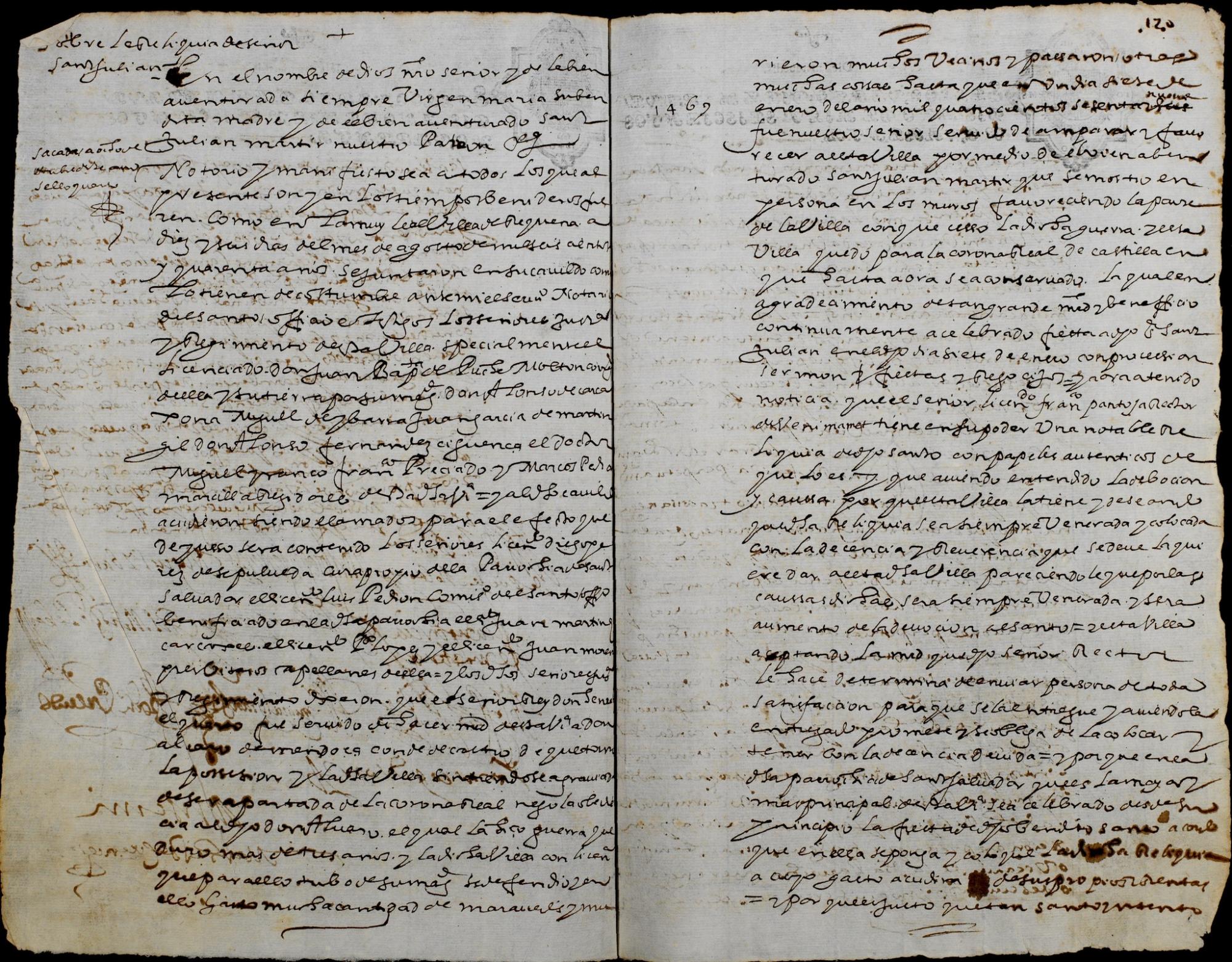 El primero es de agosto de 1640. El acta se inicia relatando la intervención liberadora de san Julián en el conflicto de los requenenses contra los súbditos de don Álvaro de Mendoza en enero de 1468. El acta informa de los deseos del rector de Benimámet (Valencia) que decía poseer «una notable reliquia de dicho santo con papeles auténticos de que lo es… deseando que dicha reliquia sea siempre venerada y colocada con la decencia y reverencia que se deve». Por supuesto, la Villa aceptó la donación y decidió colocarla en la Iglesia de El Salvador por que «es la mayor y más principal desa villa se a celebrado desde su principio la fiesta de dicho bendito santo». Además, para tener perpetua memoria del acontecimiento, se fundó una perpetua anual por el ánima del rector de Benimámet, Francisco Pantoja, al día siguiente de la fiesta del santo -que era el 7 de enero-, con un nocturno de tres lecciones y misa cantada con diáconos.