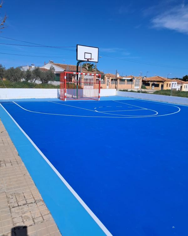 Desde el Ayuntamiento de Requena informan de que la pista multideporte de Los Cojos, situada junto al centro social, luce ya completamente renovada tras la finalización de los trabajos de mejora impulsados por el consistorio.