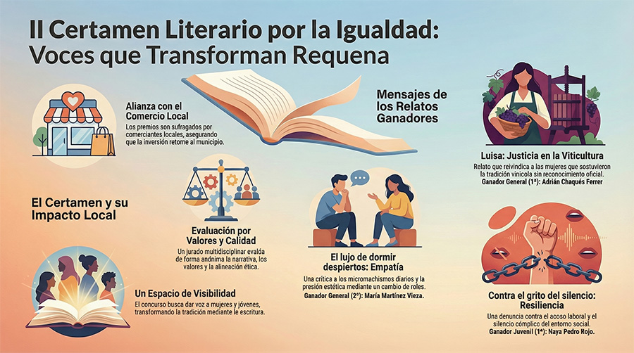 La entrega de premios volvió a dejar claro que este certamen no solo reconoce el talento literario, sino que también refuerza el compromiso de Requena con una igualdad real, transversal y participativa, uniendo cultura, educación, comercio local y sensibilización social en una misma propuesta.