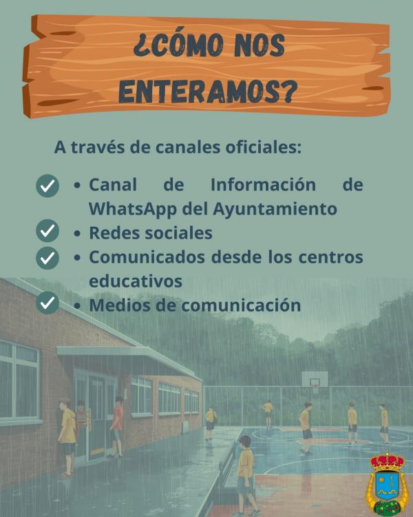 La información oficial se comunicará siempre a través del Canal de Información de WhatsApp del Ayuntamiento, redes sociales, medios de comunicación y los propios centros educativos.