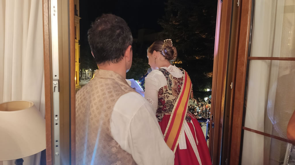 Unas horas más tarde, a las 00:00 horas, la Reina Central, Blanca Pérez Lara, tomaba el micrófono desde el edificio bajo la Torre del Homenaje, para dirigirse a toda Requena y agradecerles su colaboración y su deseo de que hayan tenido unas buenas fiestas.