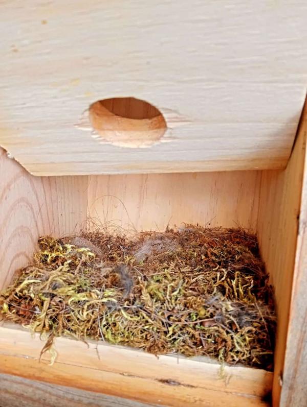Es muy probable que hayan ocupado también las cajas nido especies como herrerillo común (Cyanistes caeruleus), herrerillo capuchino (Lophophanes cristatus) y agateador europeo (Certhia brachydactyla), especies que sí hemos comprobado su reproducción otros años, pero que este año, con la revisión de invierno es más complicado identificar. La especie que no ha empleado las cajas este año y sí otros ha sido el chochín (Troglodytes troglodytes), un pequeña ave de apenas 10g de peso que suele rellenar por completo la caja de musgo, siendo clara la identificación del mismo.