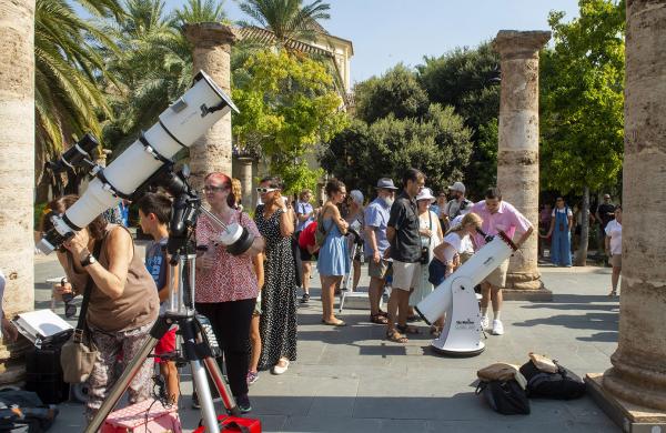 Más de doscientas personas disfrutaron hoy de la actividad de observación solar celebrada en el Museu Valencià de la Il·lustració i de la Modernitat (MuVIM), una cita organizada por la Diputación de Valencia y el Centro de Innovación Territorial RuralTEC, en colaboración con la Asociación Valenciana de Astronomía, el Centro Big History de Aras de los Olmos, el MuVIM, la Mancomunidad Interior Tierra del Vino y Tierra Bobal (Utiel Requena)