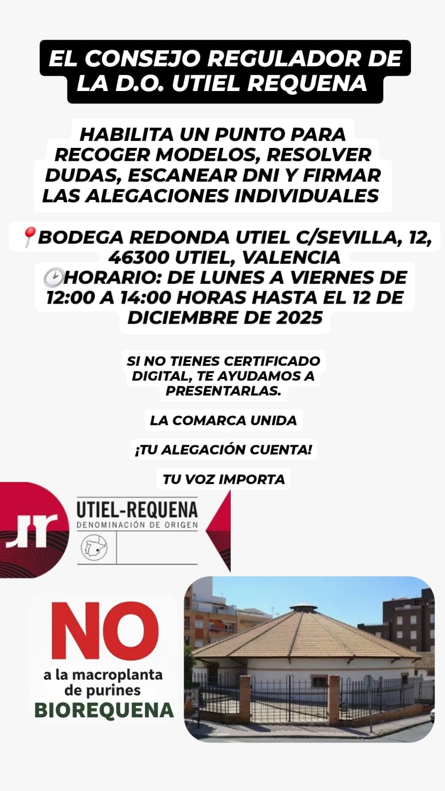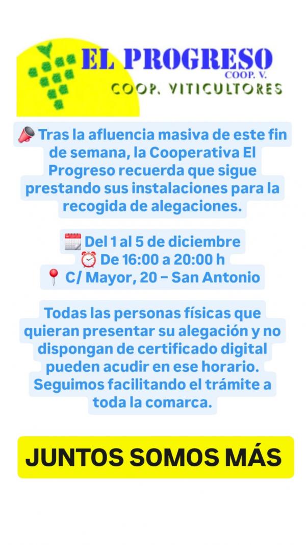 La Cooperativa El Progreso habilitó un punto específico para recoger las alegaciones en contra al proyecto de macroplanta promovido por Biorequena, facilitando el trámite a todas aquellas personas que no disponen de certificado digital y quieren que su voz sea escuchada. Desde el viernes hasta el domingo, la afluencia no ha cesado: centenares de vecinos y vecinas de toda la comarca han acudido de forma ininterrumpida, reflejando un compromiso y una unidad inaudita en nuestro territorio.