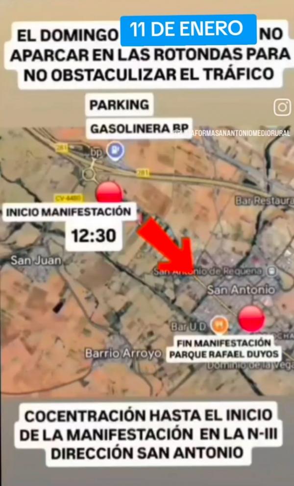 La manifestación mantendrá el recorrido autorizado, con inicio en la rotonda de San Juan (aparcamiento de la gasolinera La Ajedrea) y final en el Parque Rafael Duyos, donde se procederá a la lectura de un manifiesto y agradecimientos.