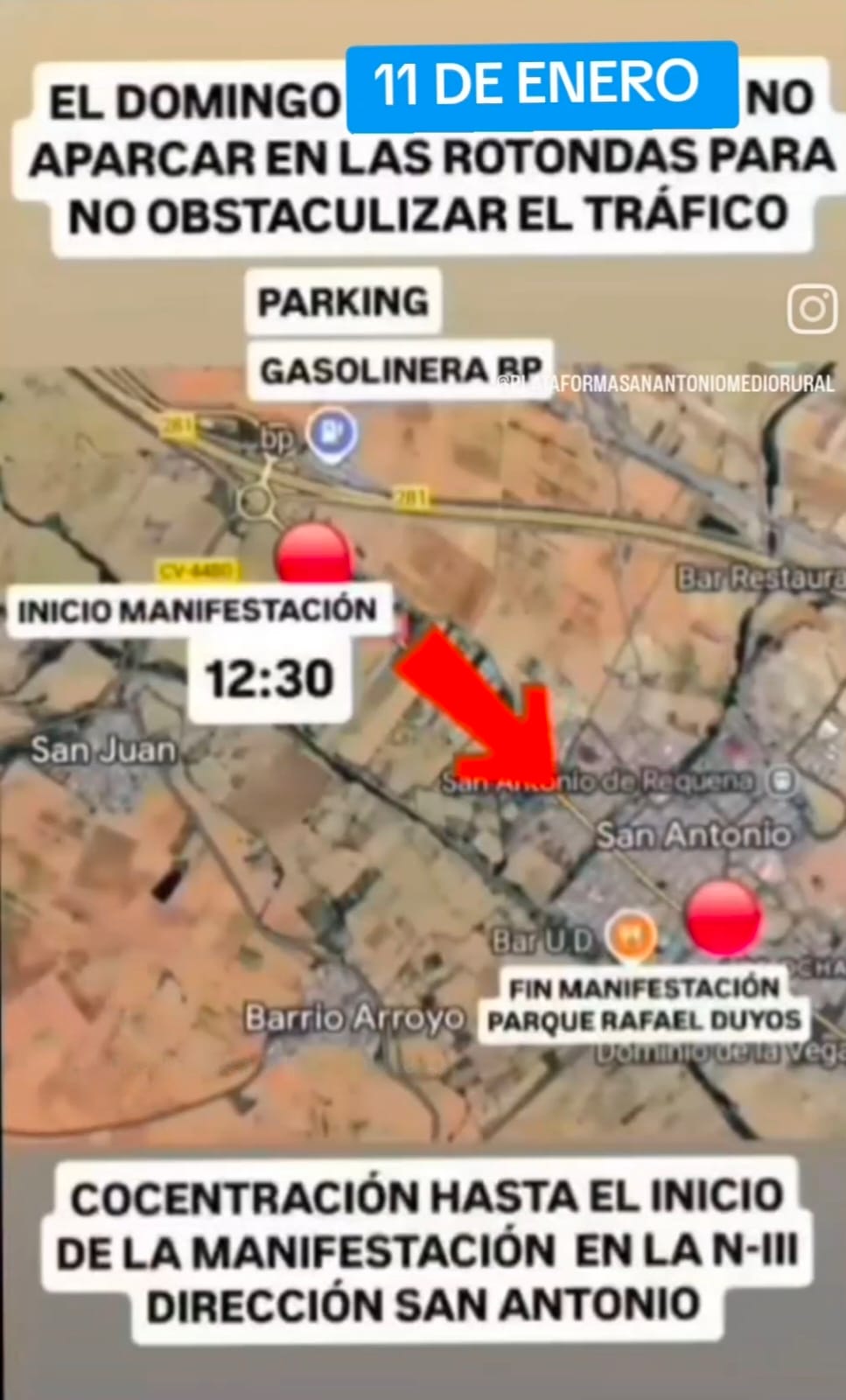 La Plataforma para la Defensa del Medio Ambiental y Rural de San Antonio y Comarca convoca una manifestación este domingo 11 de enero de 2026, a las 12:30 horas, en San Antonio, retomando la movilización ciudadana que tuvo que ser suspendida el pasado 14 de diciembre por motivos de seguridad ante la alerta meteorológica.