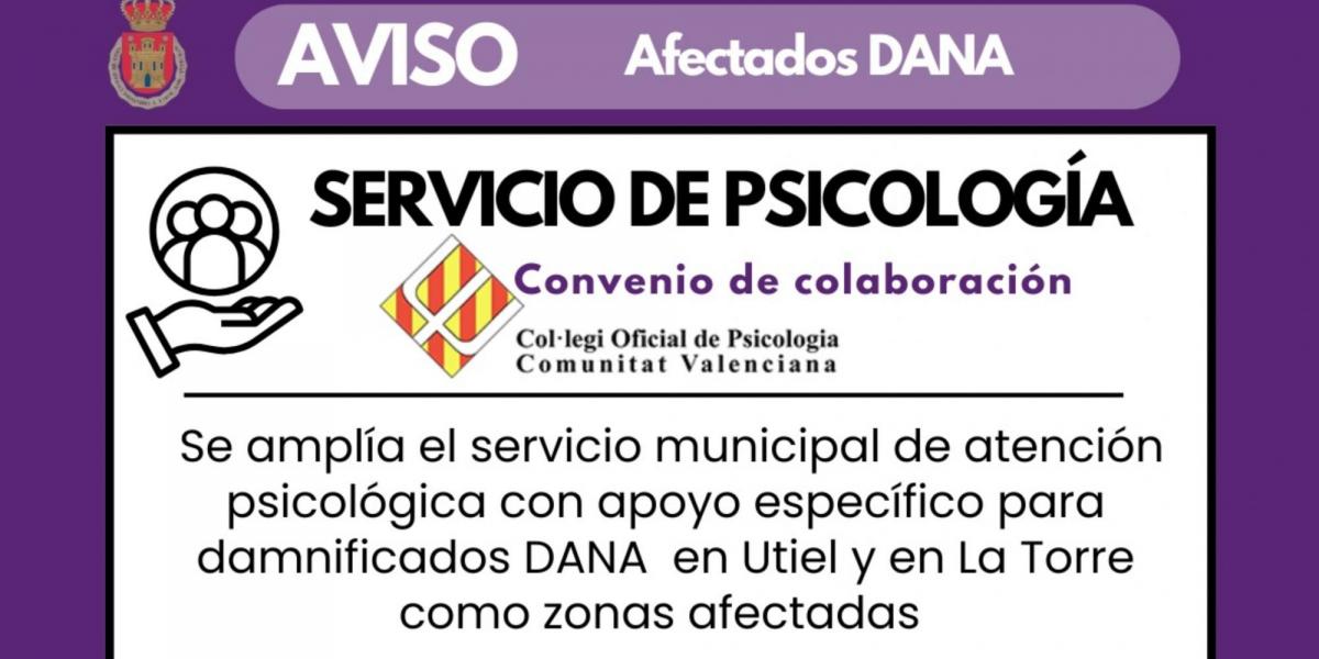 El servicio de atención psicológica DANA está disponible de lunes a viernes en el el edificio de Servicios Sociales de Utiel y los miércoles en la pedanía de La Torre