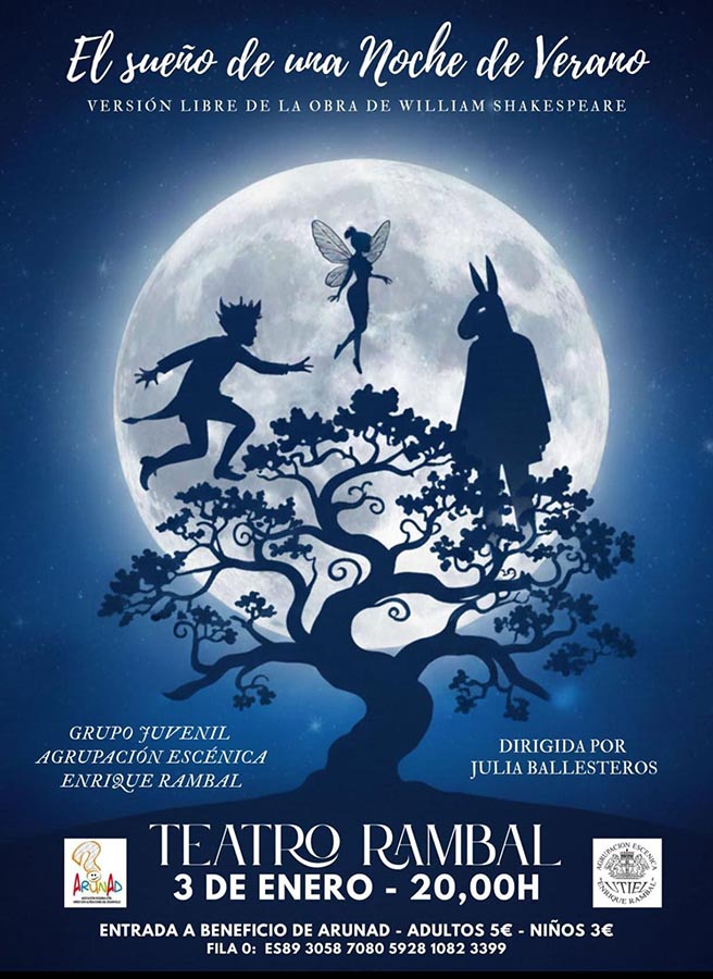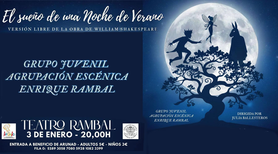 El Grupo Juvenil de la Agrupación Escénica Enrique Rambal, bajo la dirección de Julia Ballesteros, presentará una versión libre de “El sueño de una noche de verano”, la célebre comedia de William Shakespeare. Esta adaptación combina fantasía, humor y emoción, ofreciendo una propuesta fresca y accesible, especialmente pensada para público joven y familiar.