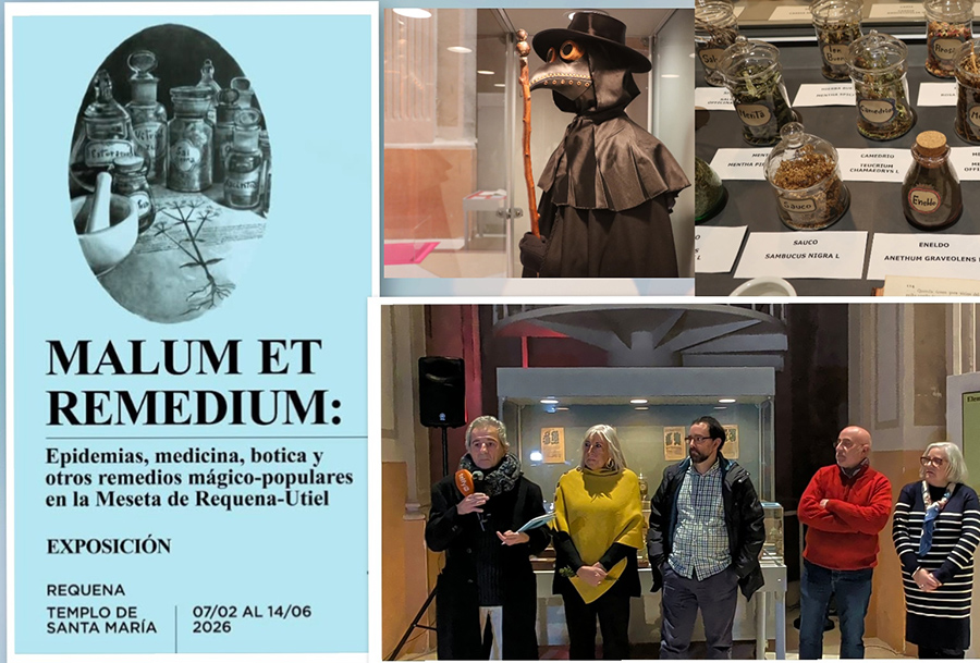 El Templo de Santa María de Requena acogió el sábado 7 de febrero la inauguración de la exposición «MALUM ET REMEDIUM (El mal y los remedios)», una muestra que combina documentos históricos, piezas bibliográficas y objetos para contar, de forma amena y muy visual, cómo se vivieron las epidemias y cómo se intentó combatirlas, con ciencia, tradición y fe, en Requena y su comarca.