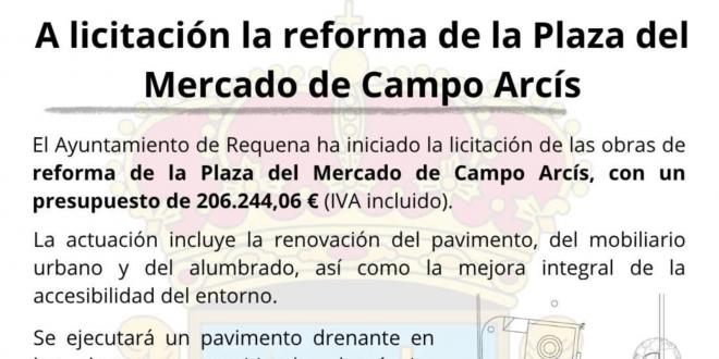 A licitación la reforma de la Plaza del Mercado de la pedanía requenense de Campo Arcís