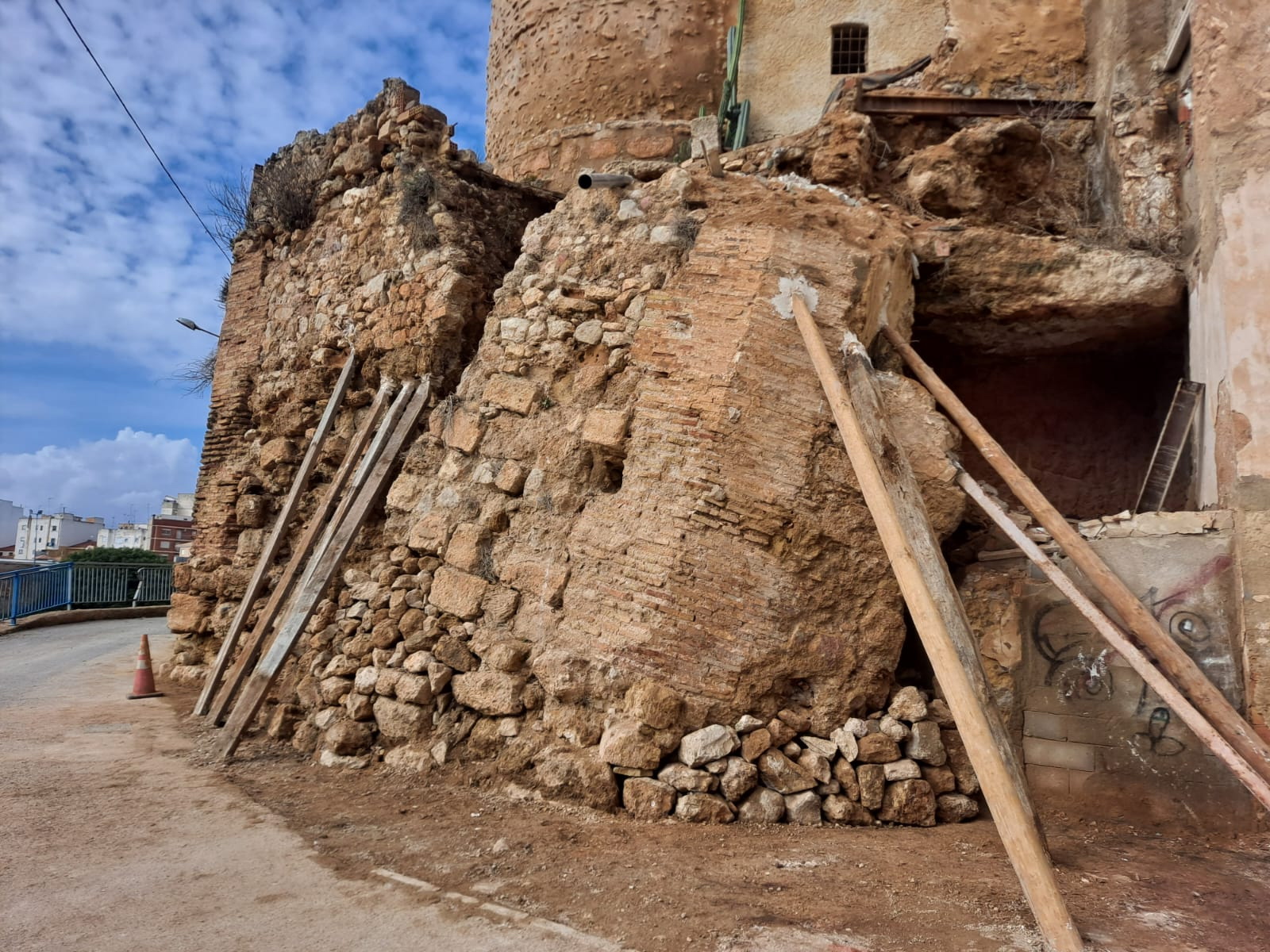Aparentemente la ruina parece estabilizada, pero lo descarnado que muestra la grieta y la permeabilidad del relleno de la torre hacen no garantizar su permanencia a medio y largo plazo. Éste se ha desplazado ligeramente de su base, ataluzándose hacia el interior, y se ha girado hacia su lado derecho, es decir, hacia el solar vacío que linda con la torre.