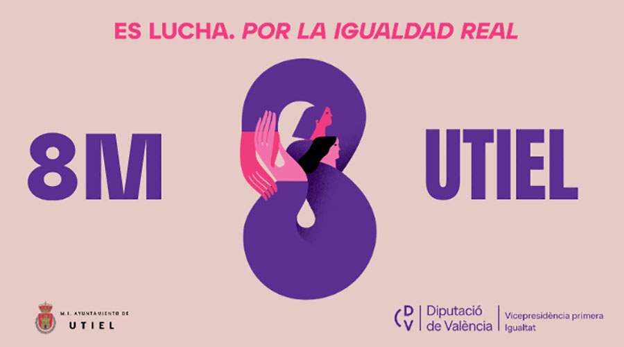 El consistorio utielano se adhiere a la campaña de Diputación de Valencia y presenta su programa especial de esta semana conmemorativa bajo el lema “8M es lucha. Por la igualdad real” para seguir reivindicando la igualdad real entre mujeres y hombres, la voluntad de sumar en el esfuerzo colectivo y en combatir todas las formas de discriminación hacia las mujeres.