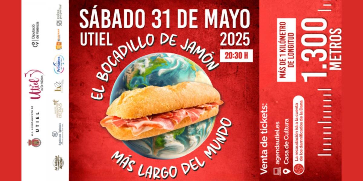 A partir de las 20.30 horas, el Ayuntamiento de Utiel , en colaboración con diferentes empresas e instituciones, llenará las principales calles de Utiel con un bocadillo extra gigante de 1.3 kilómetros y más de 3.000 kilos de peso para repartir alrededor de 4.000 raciones con el objetivo de recaudar fondos para las personas afectadas por la riada en el municipio.