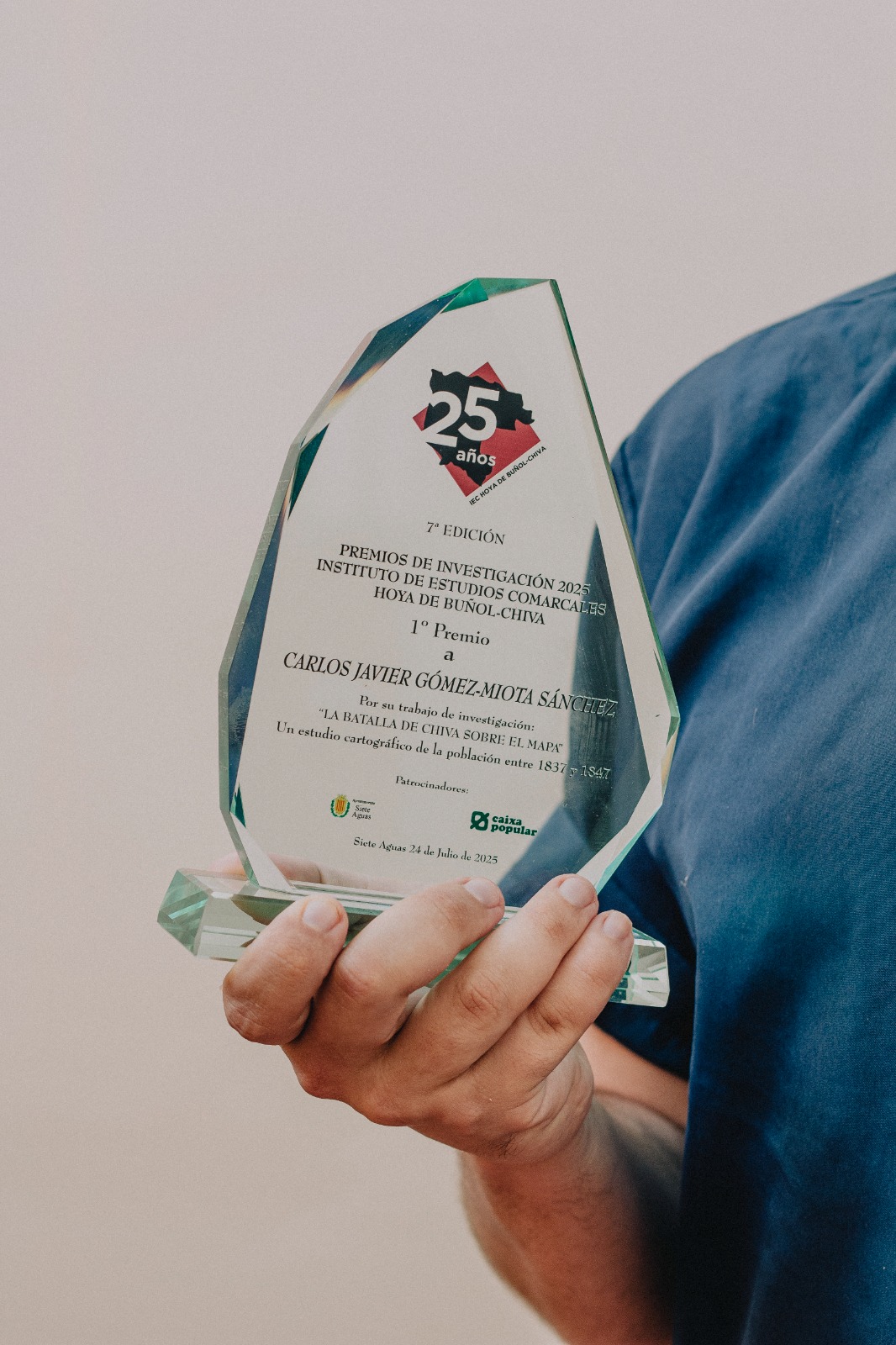 El IEC Hoya de Buñol Chiva, en su séptima edición de los Premios de Investigación Comarcal, promueve estudios rigurosos sobre la comarca de la Hoya de Buñol-Chiva en ámbitos históricos, culturales, sociales y geográficos. La ceremonia del 25 de julio rindió homenaje a trabajos presentados, y el jurado destacó la calidad y originalidad de los proyectos premiados. El estudio de Carlos Javier Gómez Miota representa una aportación destacada a la historia local y al uso contemporáneo de fuentes cartográficas como herramientas de análisis territorial. Además, refuerza la proyección del interior valenciano como foco de investigación histórica y cultural.