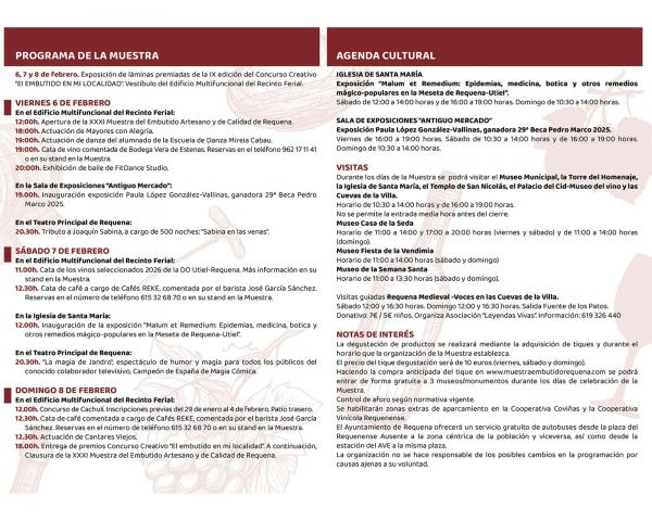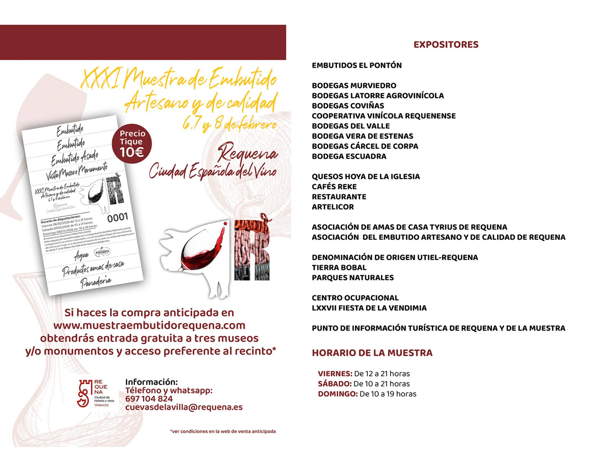 Los días 6, 7 y 8 de febrero se celebrará una nueva edición de la Muestra de Embutido Artesano y de Calidad de Requena, uno de los eventos gastronómicos más emblemáticos y esperados de nuestra ciudad.